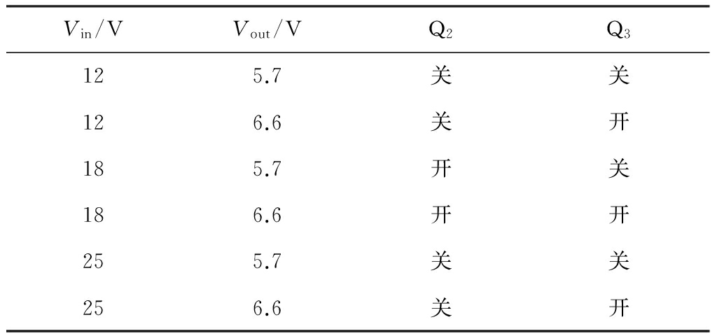 打开,对电池进行充电,否则关闭Q2,切断充电回路。电池输出电压Vout<5.8 V时,Q3关闭,电池不允许输出并进行充电,直至电池输出电压Vout>6.5 V时,电池才允许续工作。电池充放电管理功能测试结果见表1,达到了设计要求。