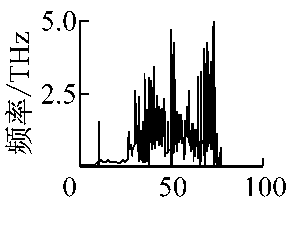 对每一个IMF分量进行Hilbert变换,并根据式(7)构造解析信号后求得瞬时频率,如图5所示。瞬时频率与傅里叶变换中的频率含义不同。前者可得到频率随时间变化的曲线,其频率是每一时刻对应的真实频率,而傅里叶变换无法做到该点[13]。通过观察瞬时频率可发现,煤岩样的太赫兹时域谱IMF分量所包含的频率信息随着分量阶数的增加而逐渐移向低频。