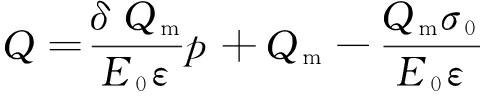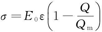 式中:σ为应力;E0为材料的初始弹性模量;ε为应变;Q为应变增至ε时的自由电荷累积;Qm为煤岩体破坏的自由电荷总累计。