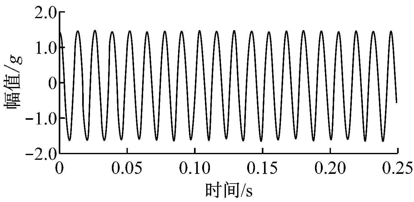 振动测试时采用HK9601振动传感器校验台提供输出频率为80 Hz、有效值为1g(g为重力加速度)、误差为±3%的标准加速度振动信号。设置监测子站采样频率为2 048 Hz,1次采样点数为512。监测子站收到振动数据请求帧后,通过振动传感器采集振动信号,并通过无线局域网发送至主站显示,振动信号波形如图9所示。经计算得加速度有效值为1.08g,频率为78.9 Hz,满足设计要求。