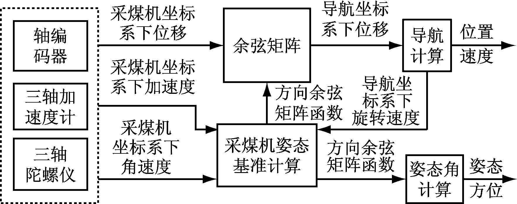 Fig.1 Shearer positioning principle based on strapdown inertial navigation