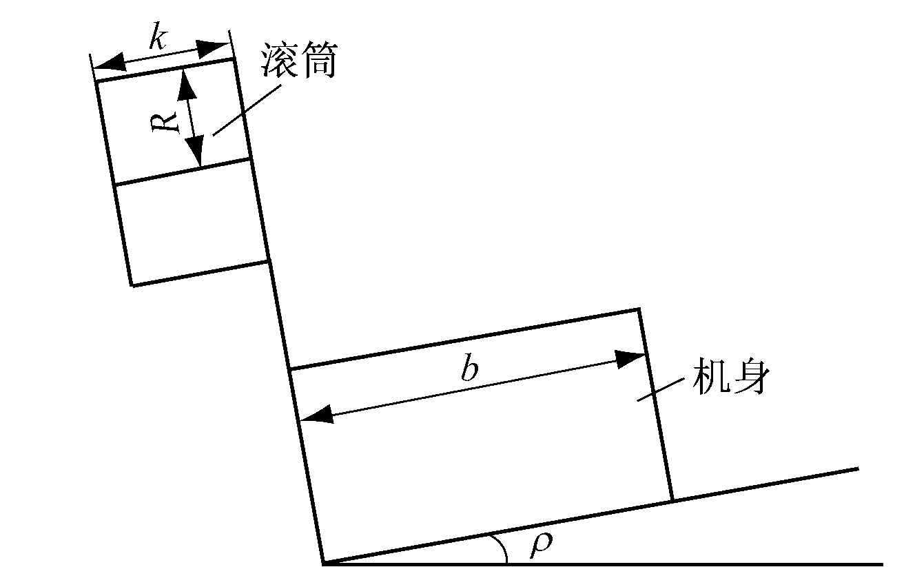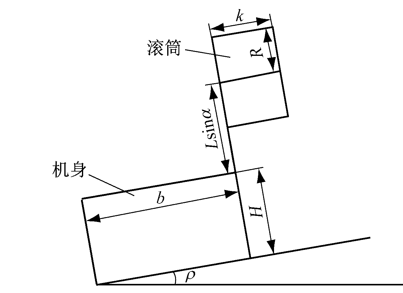 图2(c)、图2(d)分别为采煤机处于仰采与俯采的情况。k为滚筒宽度;b为采煤机宽度;ρ为机身侧向倾角。