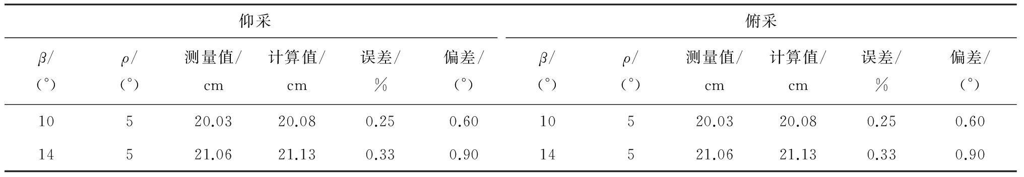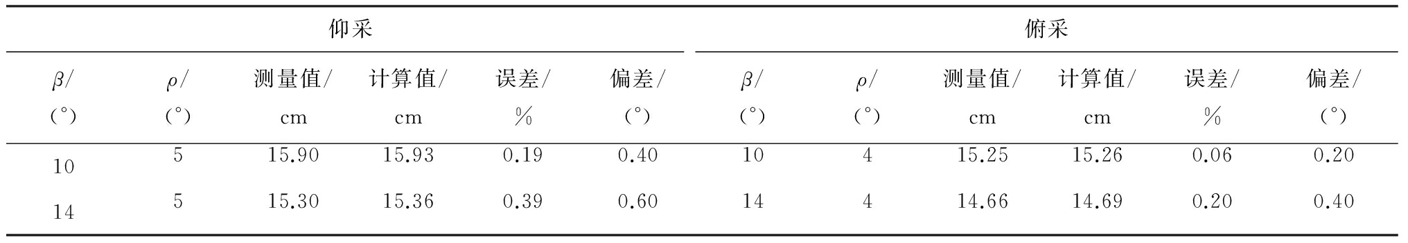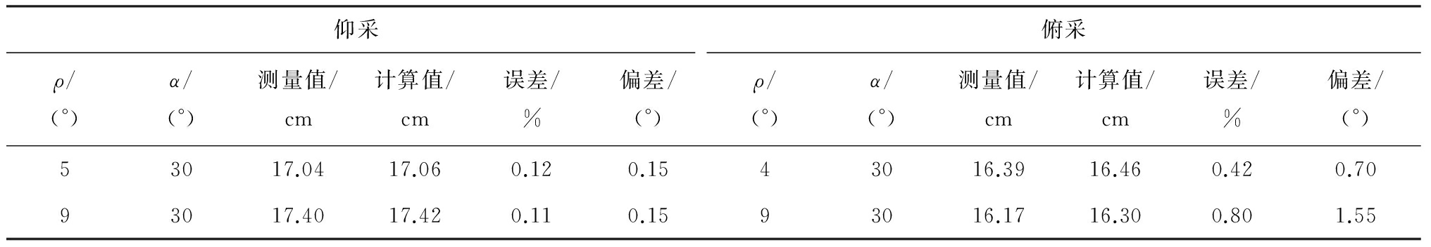 采用同样的方法测量小车在ρ=5,9°仰采情况下与ρ=4,9°俯采情况下的截割高度,结果见表3。