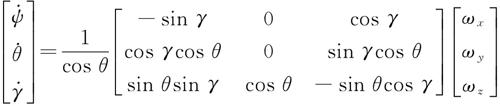 设采煤机的航向角为ψ,横滚角为θ,俯仰角为γ,则由欧拉角法求解姿态矩阵的微分方程为