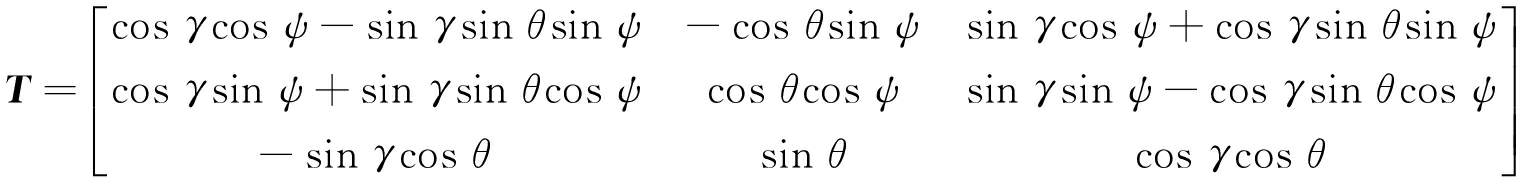 求解式(1)即可得到采煤机的3个姿态角ψ,θ,γ。将3个姿态角代入式(2)即可得到实时姿态矩阵T。