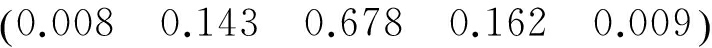 (5) 顶梁使用时间为设计寿命的60%,因此,评价为“中”,该顶梁使用时间的评价向量为