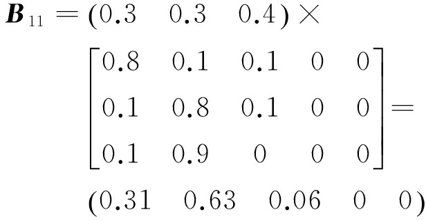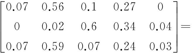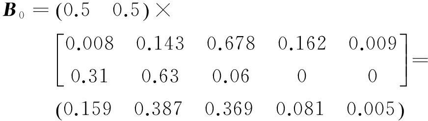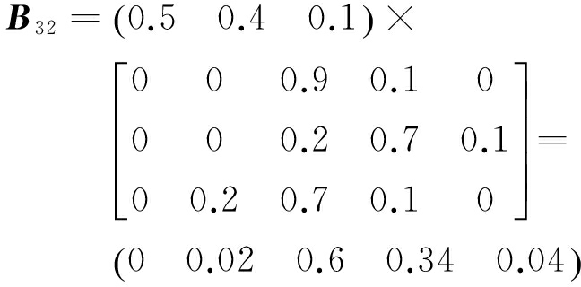 (4) 顶梁质量水平和使用操作水平较好,维护保养水平一般,则顶梁使用条件综合评价向量为