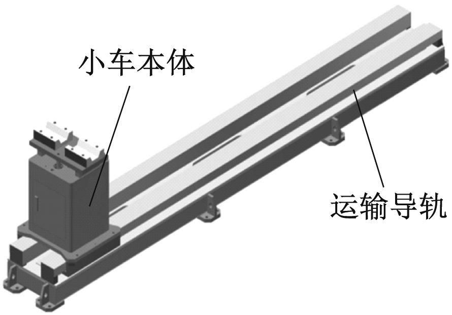 运输小车包括小车本体和运输导轨,如图3所示。运输小车通过伺服电动机和滚珠丝杠实现升降,通过伺服电动机和齿轮齿条机构实现直线移动。