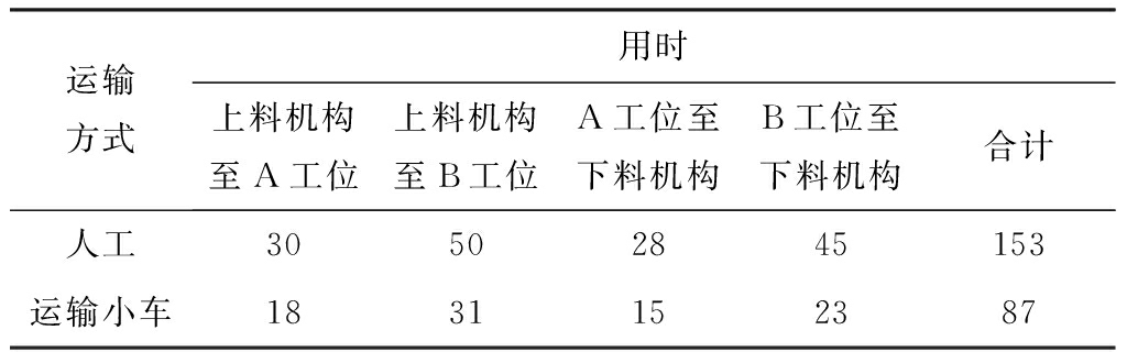 表1 采用人工方式和运输小车运输钻杆用时对比