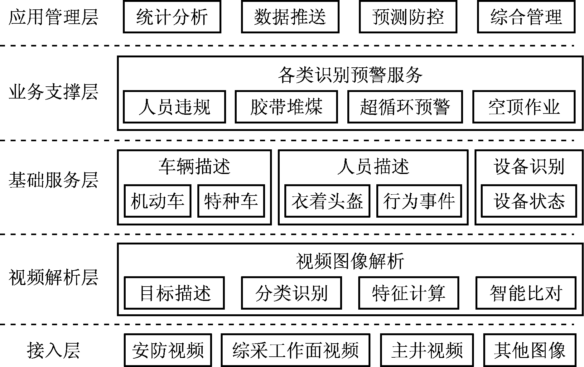 接入层通过视频综合管理平台实时接入安防视频、综采工作面视频、主井视频和其他图像资源。