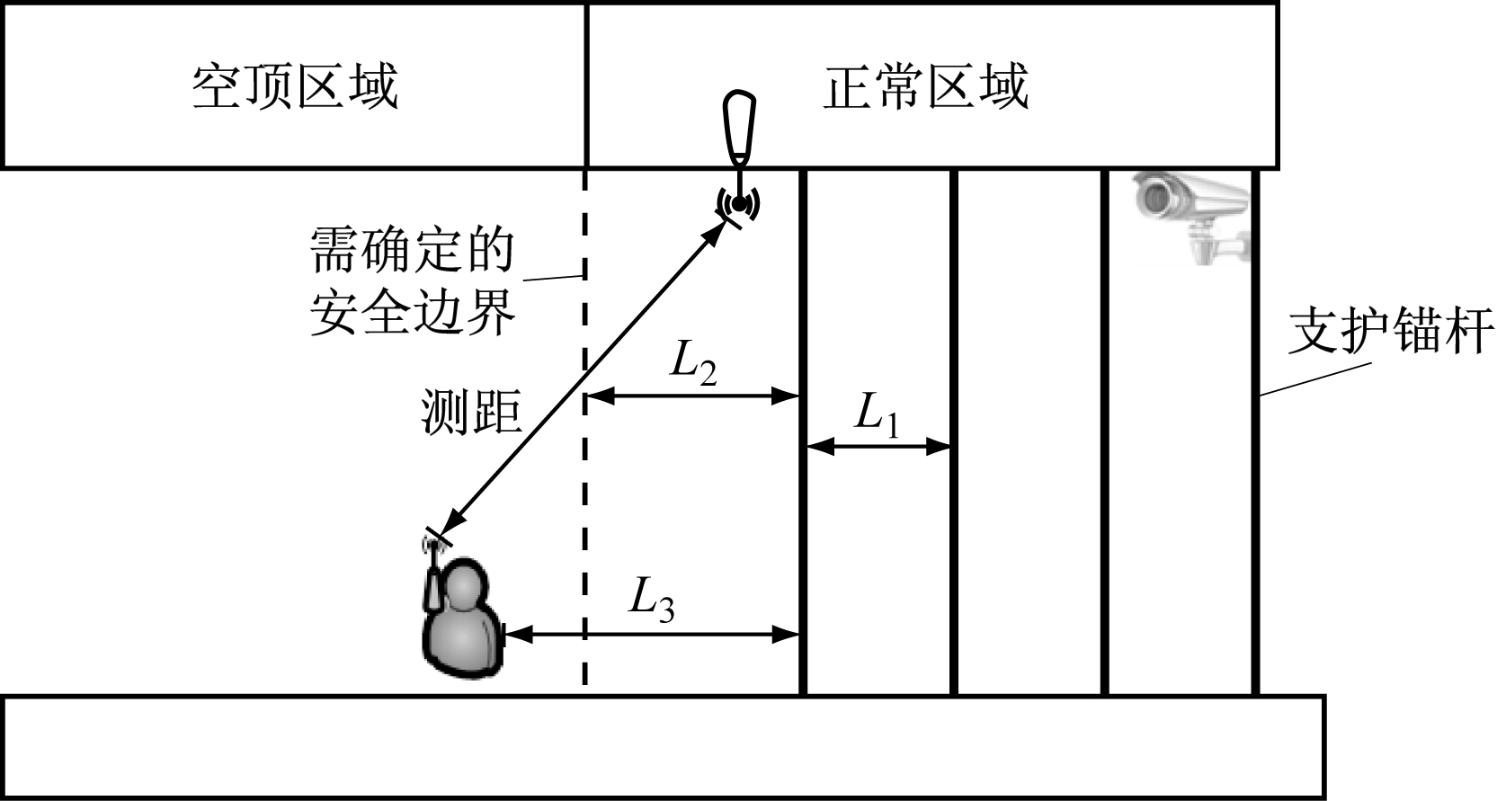(4) 如果检测到空顶区域有人,即人与最外侧锚杆间距L3>L2,则立即访问UWB定位系统,确认UWB定位系统是否在该区域检测到有人(即定位卡),如果是则认为人员检测的结果可信,否则重新检测。