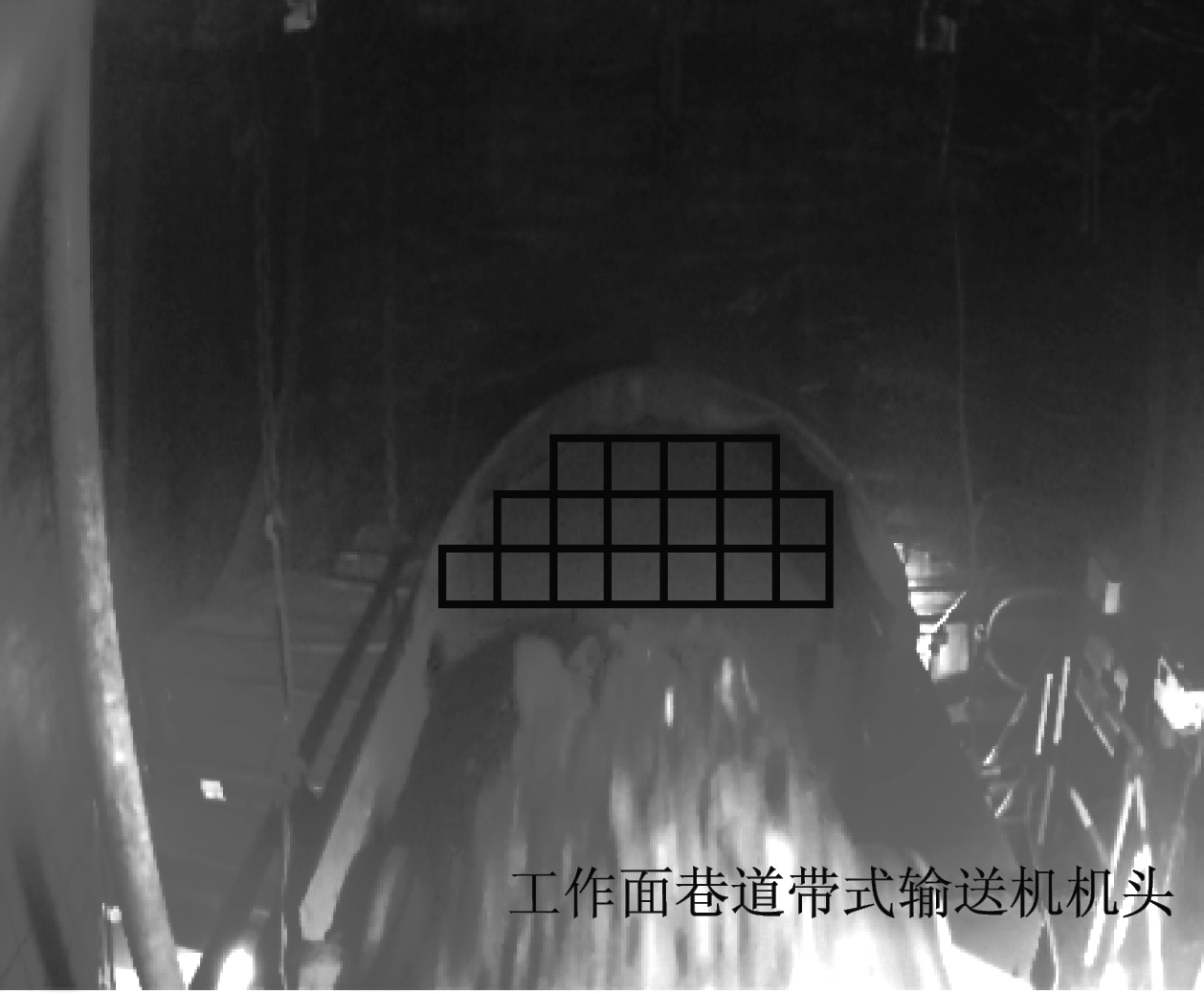 (1) 在视频图像上以画方格方式设置电子围栏,通过在视频图像上划定虚拟线设立警戒区域和警戒线,以此判断胶带上的煤量,如图3所示。