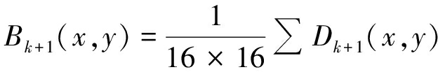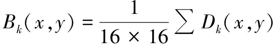 (2) 假设图像分块尺寸为16×16,计算各子块的平均绝对残差: