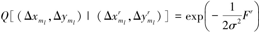 经计算可得(Δxml,Δyml),将(Δxml,Δyml)记作观测量。定义粒子之间的相似度: