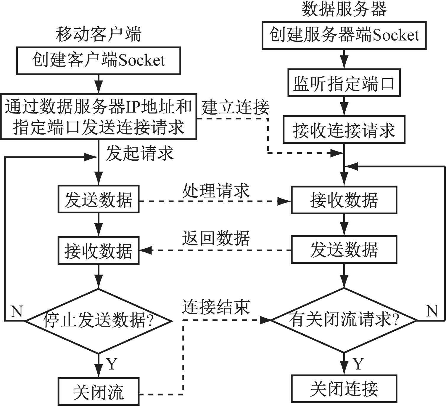 Fig.2 Socket communication process between data server and mobile client