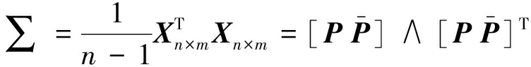 PCA方法主要用于分析处理具有高度线性相关性的测量数据,通过映射达到降维的目的,并使得变换后的主元子空间反映的是监测变量的主要变化,残差子空间反映的是监测过程中的噪声和干扰等。其基本原理是采集处于正常工况下的过程数据Xnormal,将其归一化处理为X,然后进行主元分析,建立统计分析模型。