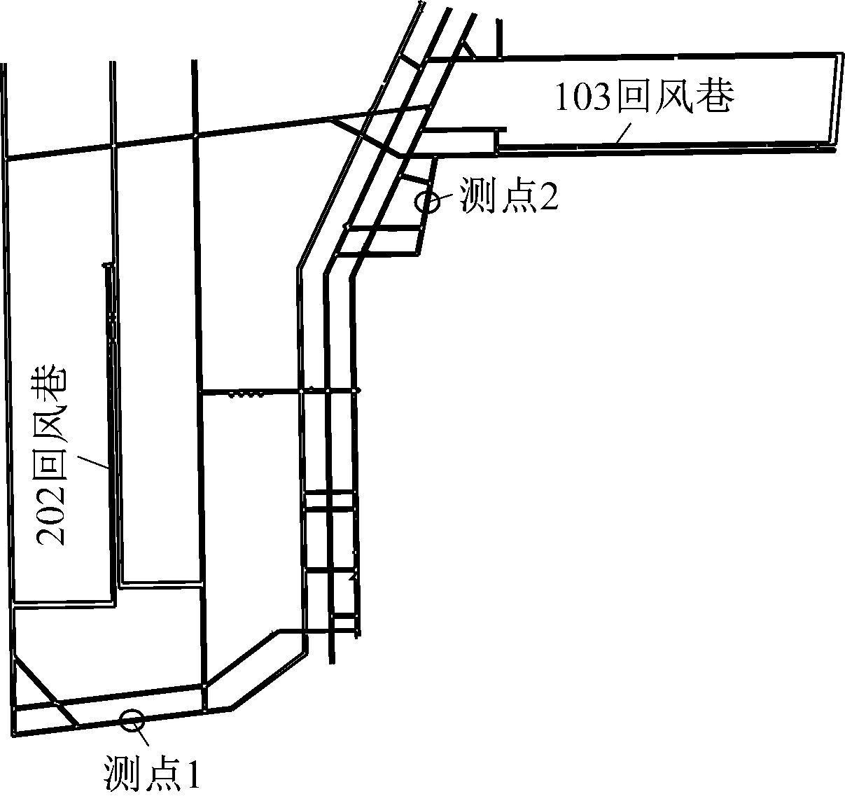 高家堡煤矿103工作面与202工作面开采4号煤层,开采深度约为1 000 m,煤层厚度约为12 m,煤层倾角平均为5°,煤体内生裂隙发育,煤层沉积稳定。103回风巷、202回风巷掘进方向的方位角分别为125°和215°,2条巷道相互垂直布置。103回风巷和202回风巷掘进断面为矩形,掘进时留设1 m多的底煤。