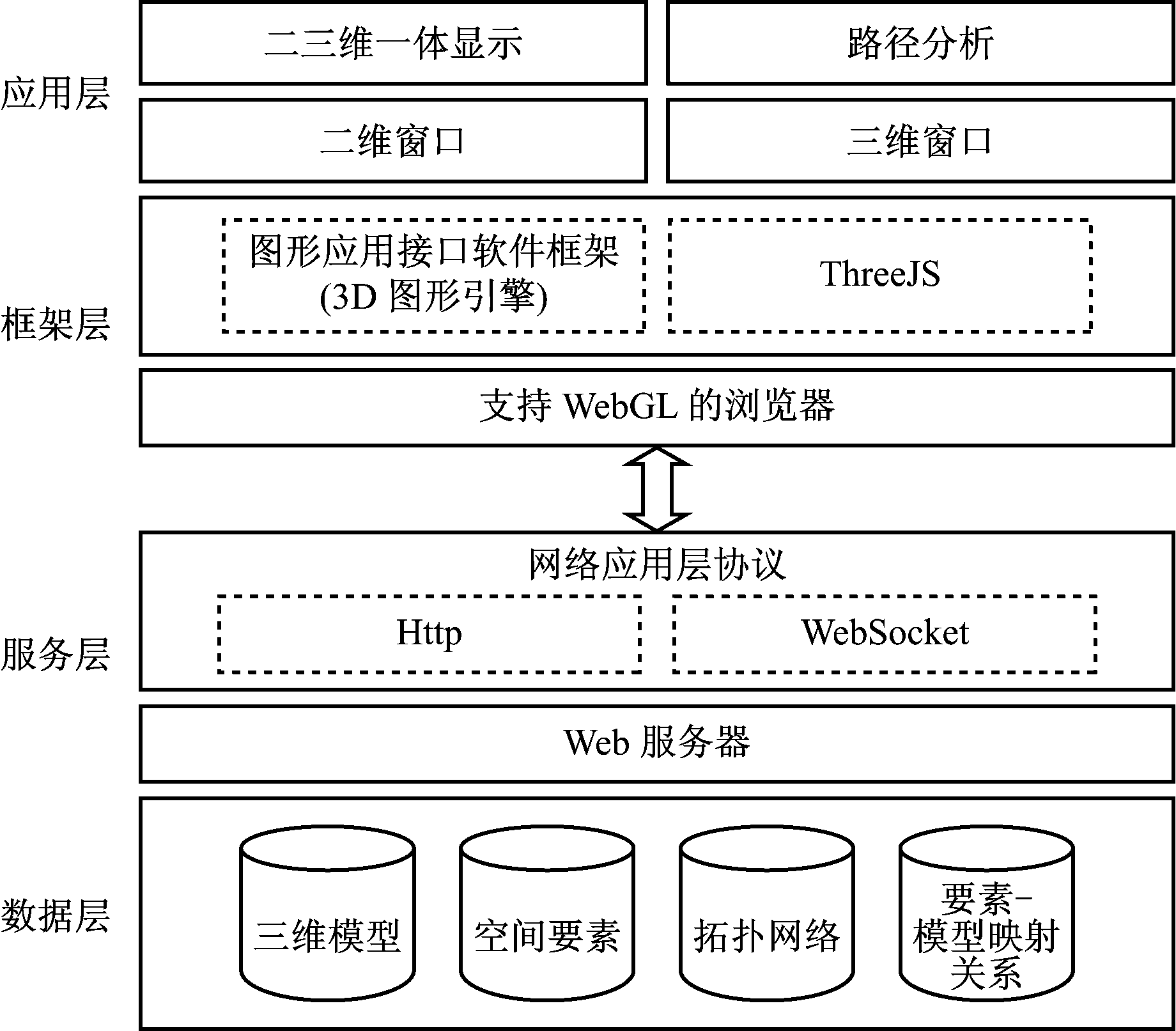 图1 基于WebGL的三维矿山巷道系统架构