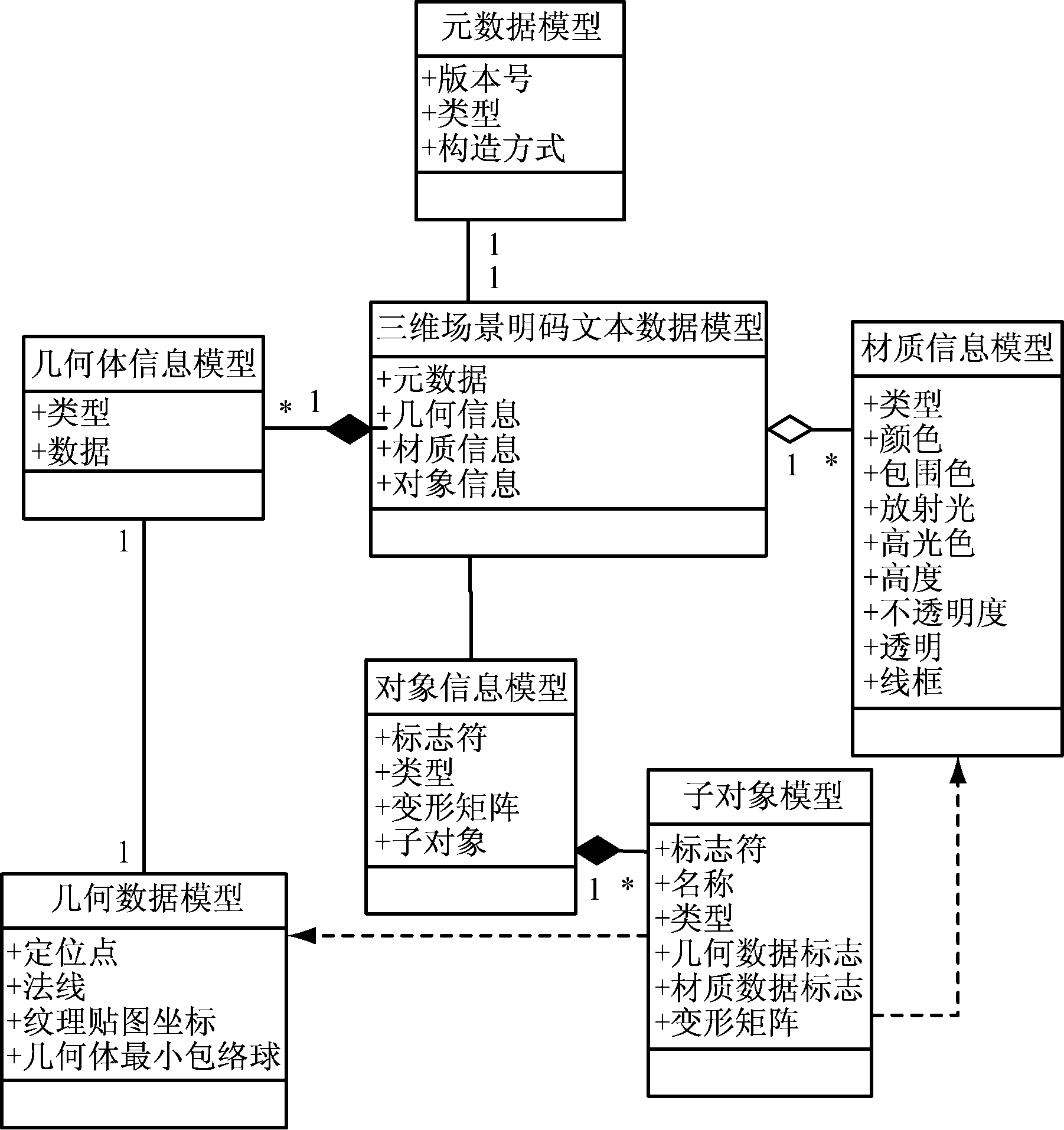 为使模型数据适用于Web端的发布、传输、转换等应用,将三维模型数据转换为JSON格式的明码文本数据,数据格式结构如图2所示。JSON属于半结构化数据,三维模型数据也可以通过构建数据表存入关系型数据库,本文不做深入讨论。