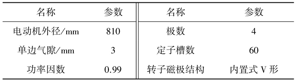 变频一体化永磁同步电动机主要技术指标如下:额定功率为1 200 kW;额定电压为3 300 V;最高恒功转速为1 800 r/min;额定工作频率为50 Hz;额定效率≥95%;绝缘等级为F;防护等级为IP54;防爆等级为ExdI Mb;工作制为S1;冷却水压不大于3 MPa[4]。