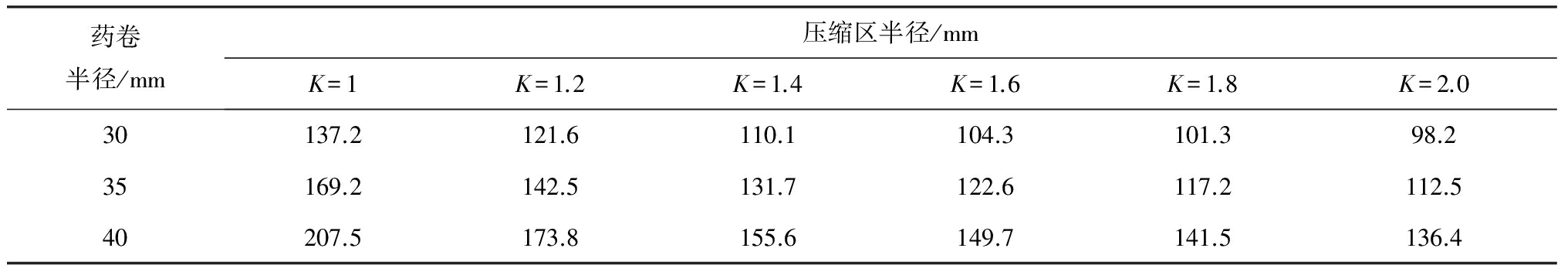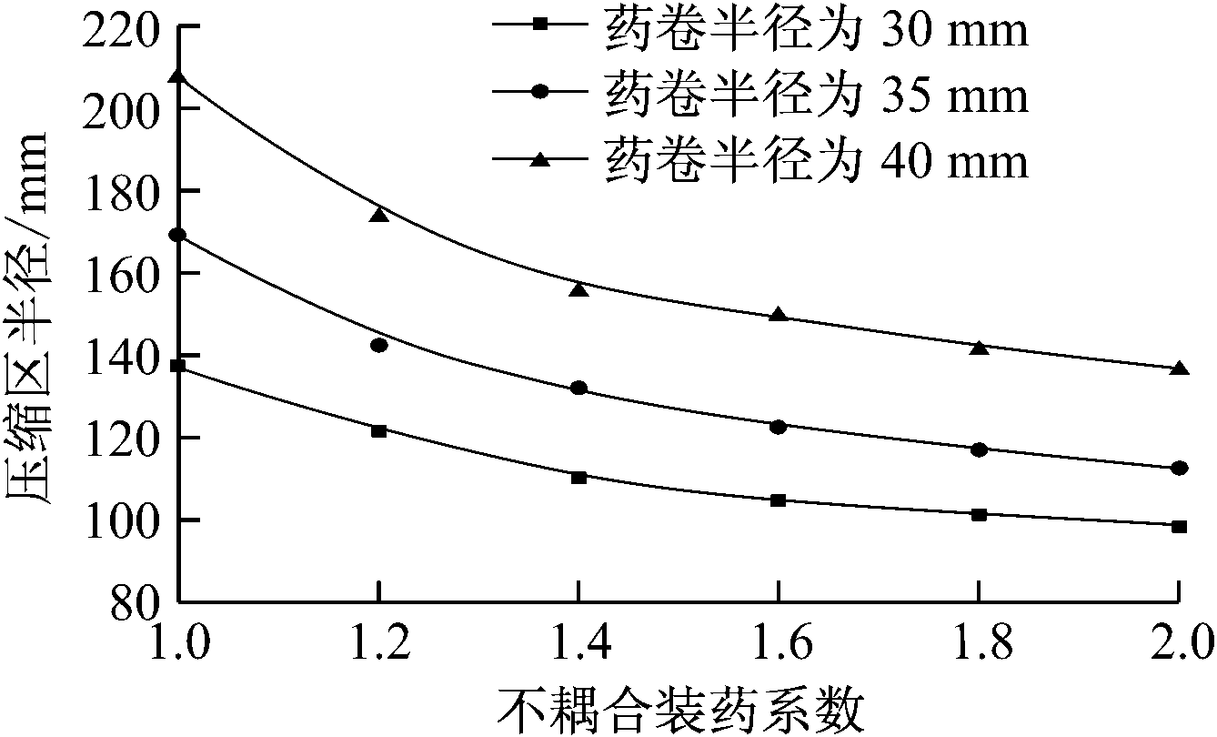 表4 不同药卷半径、不同不耦合装药系数下压缩区半径
