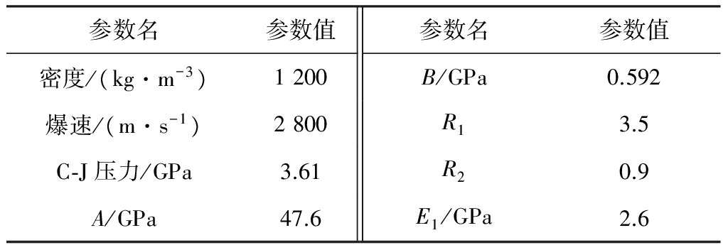 炸药状态方程采用爆破数值模拟中普遍使用的*EOS_JWL描述,可表述为