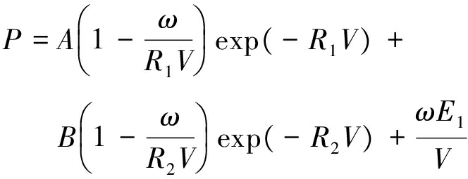 式中:P为压力;V为相对体积,即爆轰产物/炸药初始体积;ω为JWL状态方程参数。