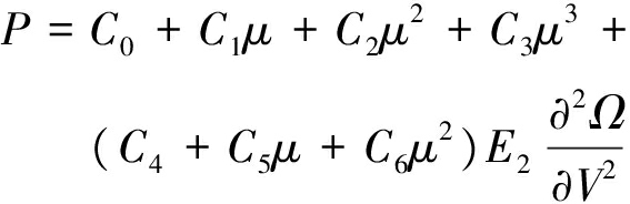 式中:μ=ρ/ρ01,ρ为当前密度,ρ0为初始密度;Ω为状态方程参数。