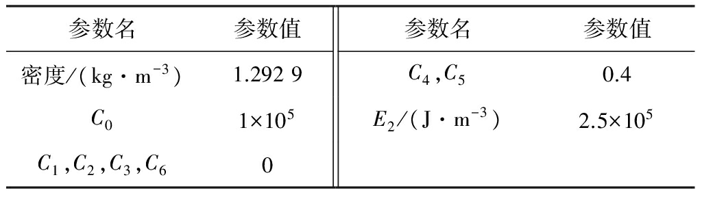 表2 空气材料、状态方程参数
