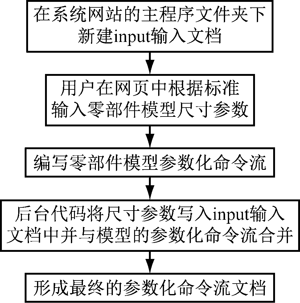 ANSYS软件本身提供了3种二次开发工具:ANSYS参数化设计语言(ANSYS Parametric Design Language,APDL)、用户界面设计语言(User Interface Design Language,UIDL)及用户可编程特性(User Programmable Features,UPFs)[10]。其中APDL主要用于完成一些通用性强的任务,如参数化建模、专用分析程序创建等[11]。基于Web的采掘运装备零部件参数化设计系统利用APDL编写参数化命令流文件,从而实现零部件的参数化设计。在参数化的分析过程中,可修改参数,达到反复分析各种尺寸设计方案的目的,且编写的参数化命令流文件不受系统平台和软件的限制,更利于保存。