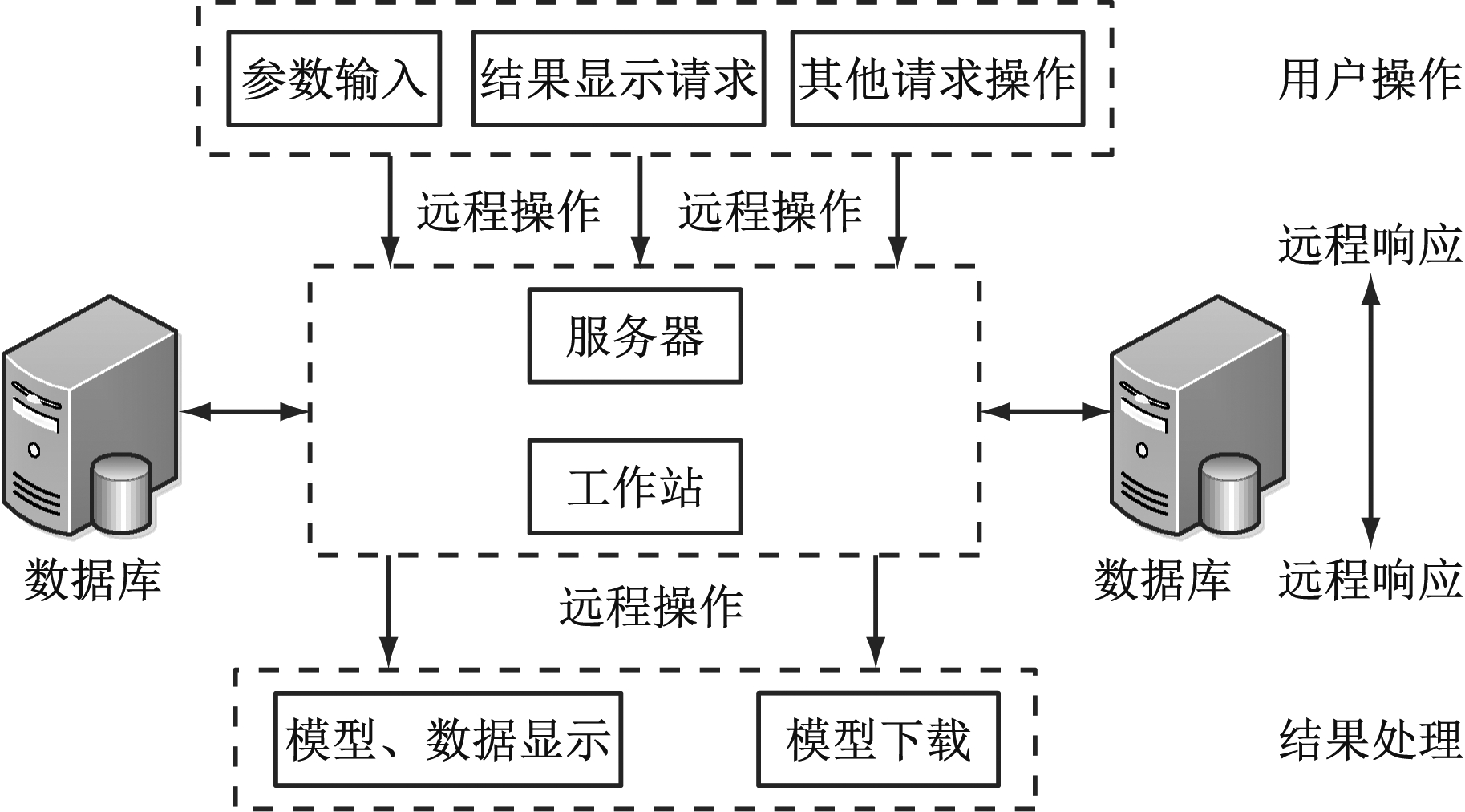 基于Web的采掘运装备零部件参数化设计系统架构如图2所示,包括用户操作、远程响应和结果处理3个部分。