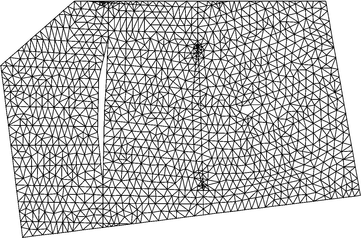 Fig.4 Constrained Delaunay triangulation in real projection unit of coal seam floor