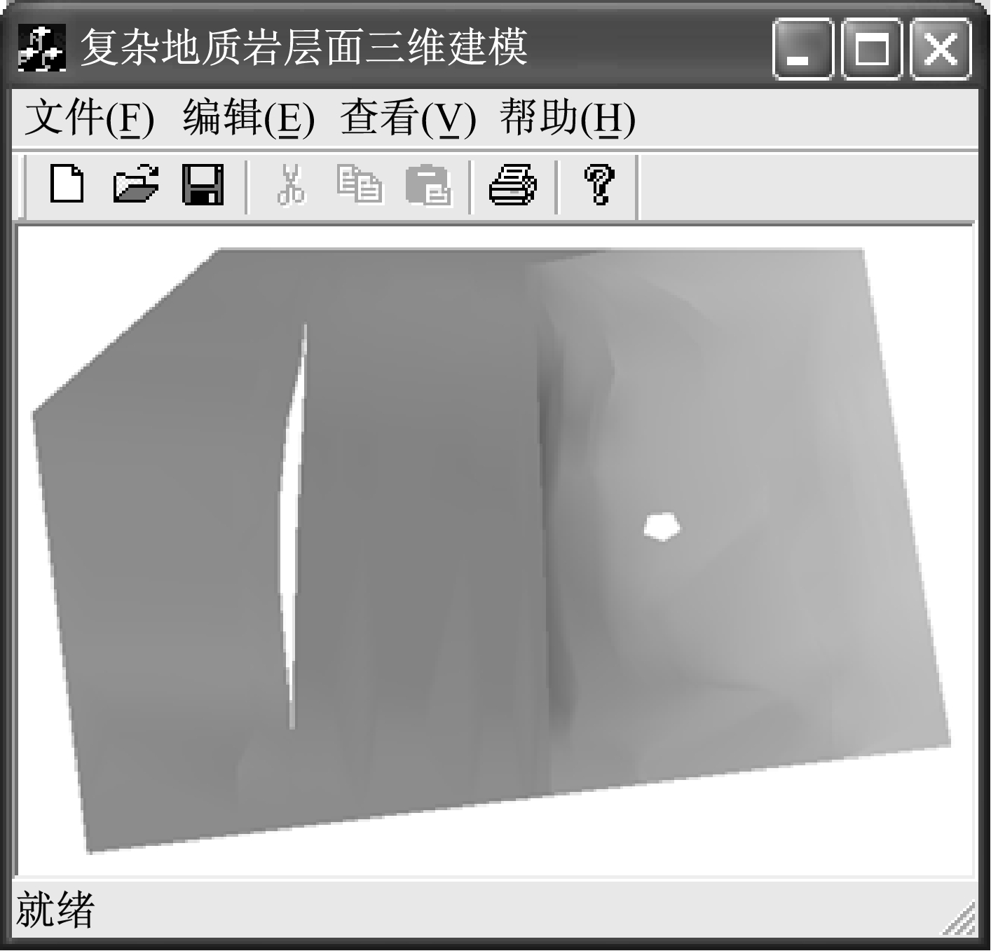 (4) 应用计算机三维图形绘制技术,并利用岩层面空间插值点,分别绘制各个空间插值单元对应的岩层面三维图形,从而完成岩层面的三维建模。