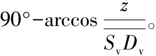 如图3所示,由顶底板构成的水平平板波导中,可通过计算入射角的余角θ得到三维锯齿螺旋射线在垂直展开面中的入射角。在