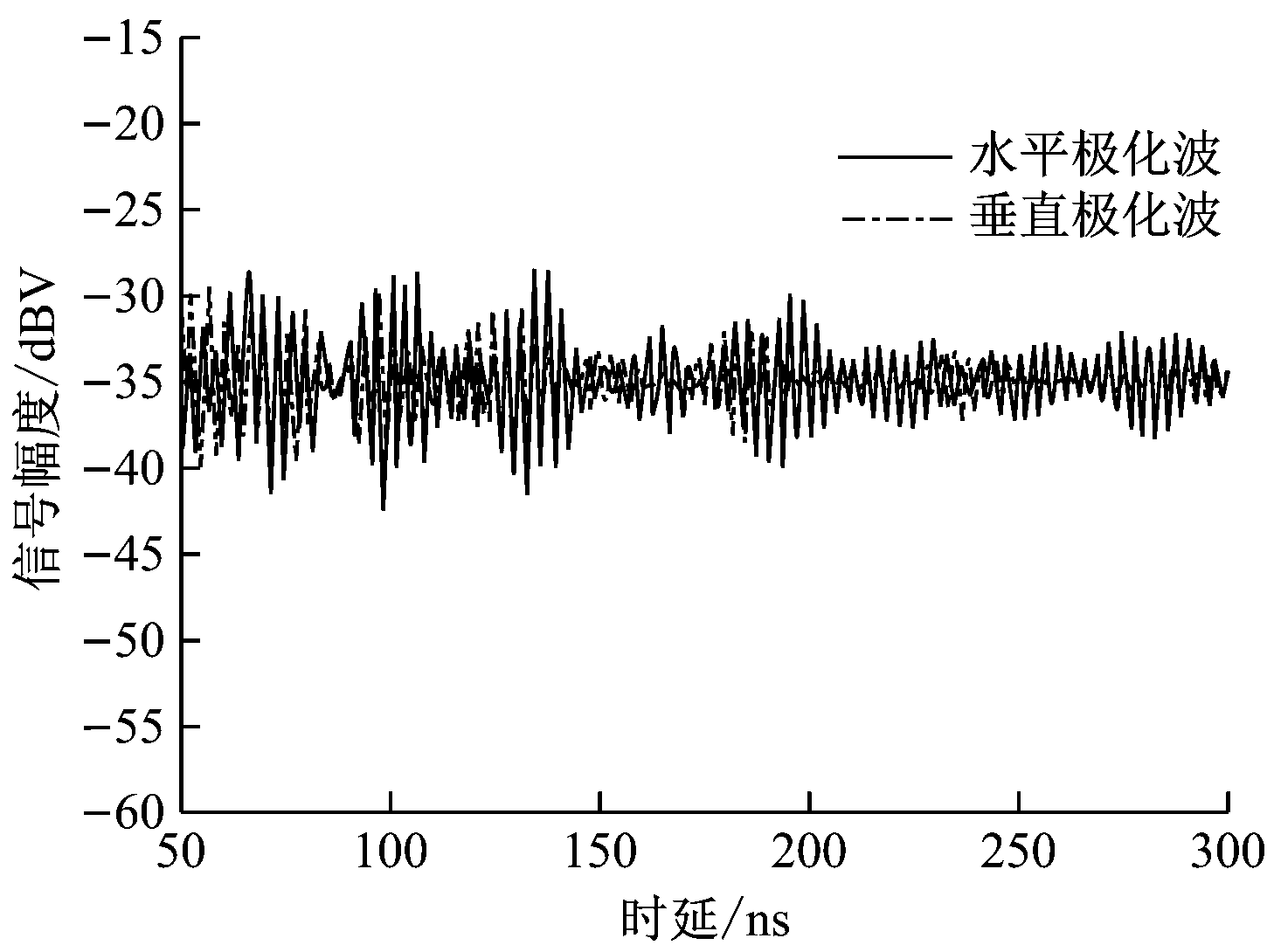 工作频率为900 MHz时的水平极化波和垂直极化波脉冲响应预测仿真曲线如图6所示。可以看出,仿真得到的时延为200 ns左右,在时延的典型值50~250 ns范围内[12],表明所建模型可以预测巷道的多径时延扩展。