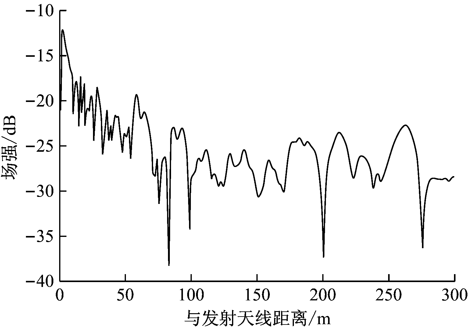 图4 工作频率为900 MHz时电磁波场强分布仿真曲线