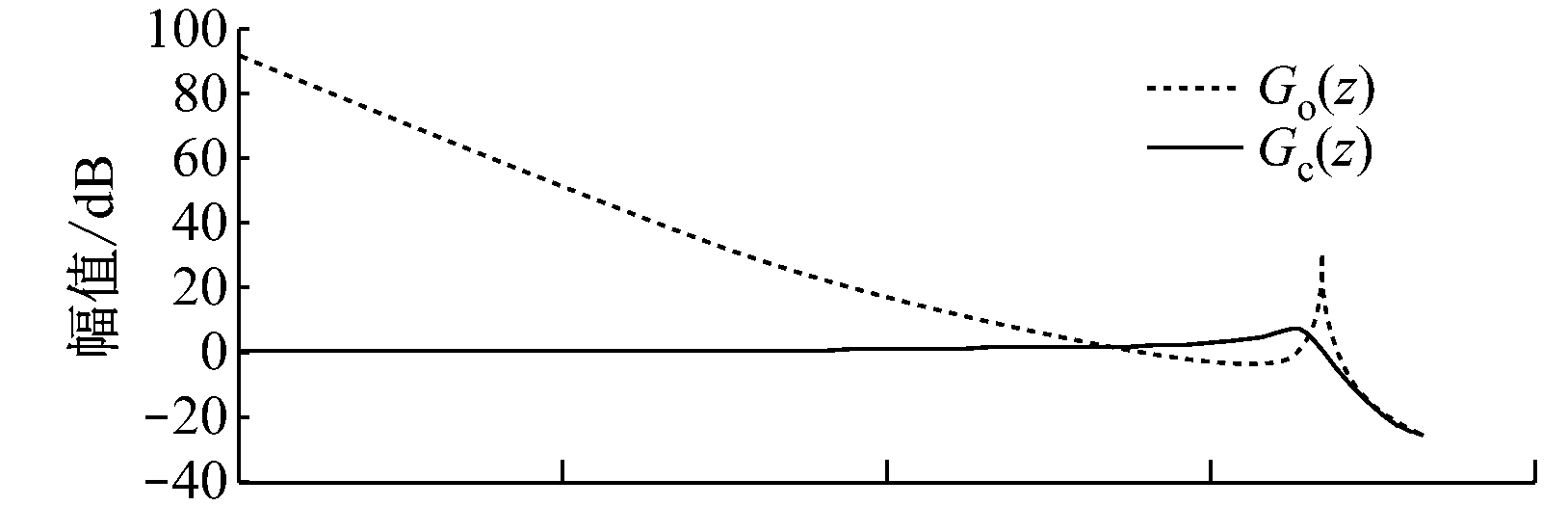 补偿器C(z)依据控制对象Gc(z)进行校正设计。补偿后的传递函数C(z)Gc(z)应在中低频具有零相位误差和零增益特性,在高频实现零相移并具有强烈的增益衰减,最终使APF系统具有较强的跟踪能力和抗高频干扰能力。
