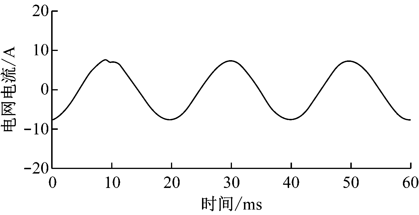 zk是一个相位超前环节,用来补偿内环的相位滞后,保证传递函数C(z)Gc(z)零相移,本文中设k=4。比例增益kr可以在电流控制器具有足够的稳定裕度和收敛速度的前提下,通过实验选择一个常数,这里取kr=0.9。