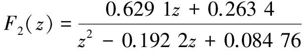 谐波电流控制器的补偿带宽一般为0~2.5 kHz,因此,二阶低通滤波器F2(z)的截止频率和阻尼系数分别等于2.5 kHz和0.707,由S域设计并离散化得到F2(z)为