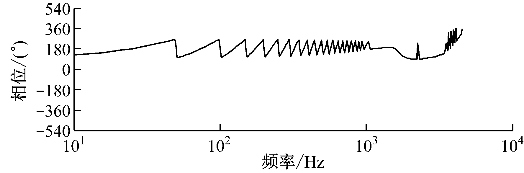 传递函数C(z)Gc(z)的Bode图如图8所示,经过补偿的C(z)Gc(z)在中低频带具有零相位误差和零增益特性,在高频带实现了增益衰减,同时利用陷波器抑制了谐振峰。