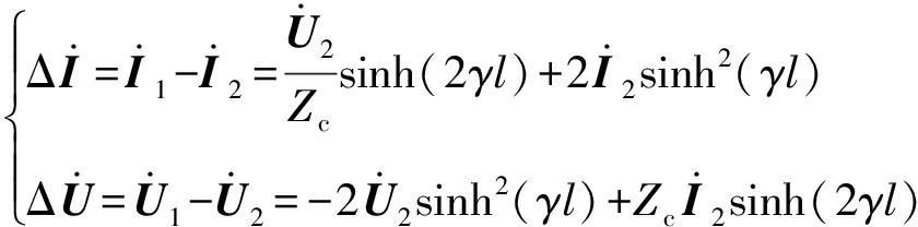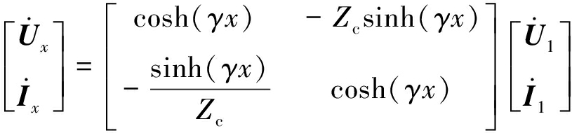 假设电缆单位长度的阻抗和导纳分别为z1=r0+jωl0和y1=g0+jωc0,其中r0为电缆线芯单位长度等效电阻,l0为电缆线芯单位长度等效电感,g0为电缆单位长度绝缘电导,c0为电缆单位长度等值电容,ω为角频率。电缆线路首端电压为