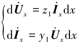 当输入电压为正弦,单相电缆线路达到稳态时,略去高阶微小量,可得dx微段上流过阻抗z1dx的电压