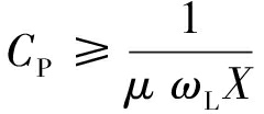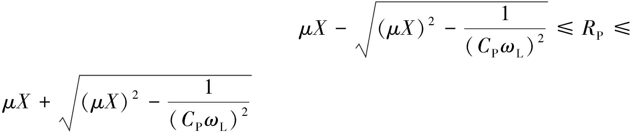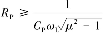 由于匹配电阻RP会引起工频损耗,为了减少工频损耗,要求匹配电容CP的工频阻抗远大于RP值,且在滤波频率下限fL(一般为150 kHz),CP阻抗远小于RP值。设μ为“P”型匹配网络的匹配效果,μ=Ug/U1,μ恒大于1,且μ越小,匹配效果越好,则匹配电阻取值范围为