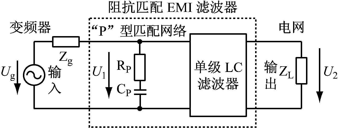 受阻抗不匹配影响,基于单级LC滤波器的EMI滤波器可能达不到理想的插入损耗,因此,采用“P”型网络进行阻抗匹配。