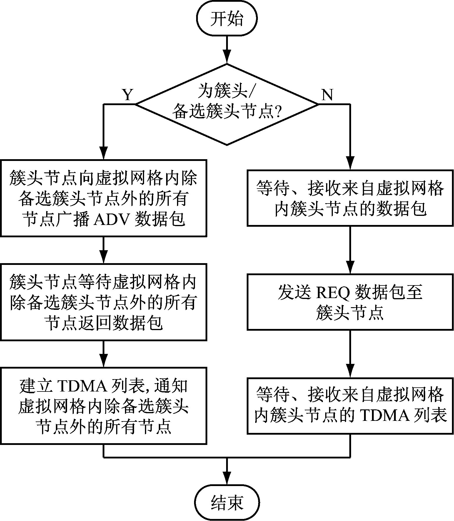 各普通多媒体传感器节点S1,S2,…,Sn-m收到簇头节点Cmax广播后,将自身信息返回至簇头节点。待簇头节点收集所有传感器节点信息后,建立簇内传感器节点通信的时分多址(Time Division Multiple Access,TDMA)列表,并将该表信息广播至普通多媒体传感器节点S1,S2,…,Sn-m。TDMA列表建立流程如图3所示。