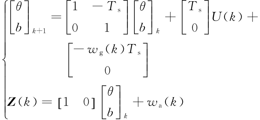为控制量系数矩阵;U(k)为控制量,即陀螺仪在k时刻的输出角速率;Ts为采样周期;wa(k)为倾角传感器在k时刻的随机游走误差。