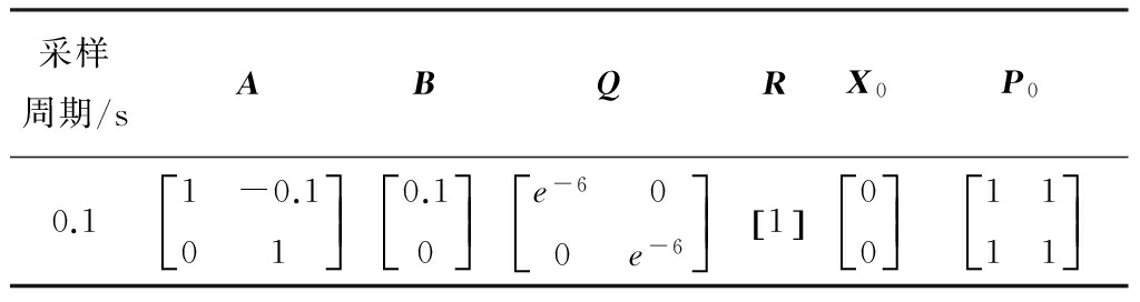 表1 卡尔曼滤波器参数初始值设置