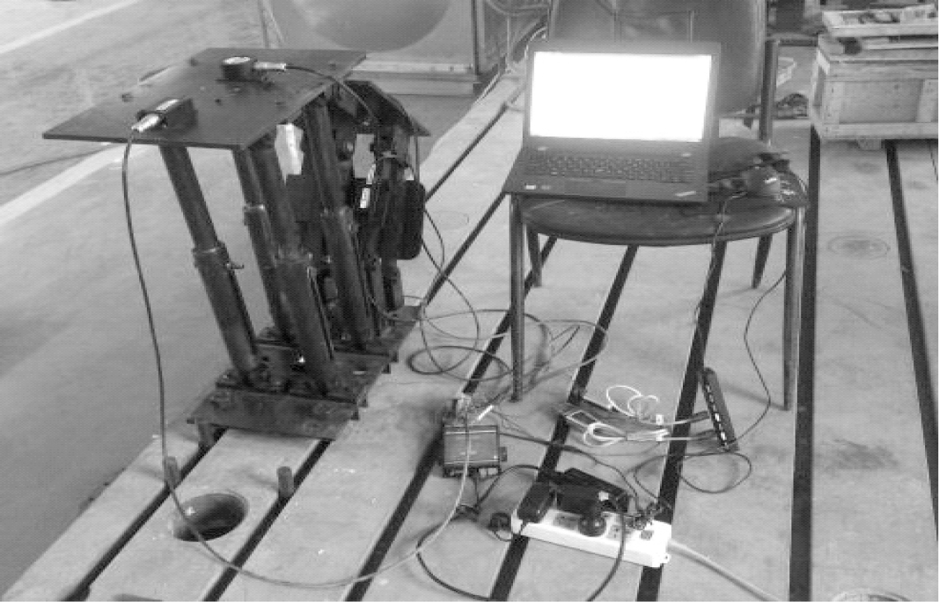 液压支架顶梁俯仰角测量实验平台如图8所示。在液压支架样机顶梁安装倾角传感器和陀螺仪,两者轴线与顶梁轴线重合,2个传感器通过RS485集线器和RS485转USB接口将数据上传到上位机,通过Matlab对原始数据进行处理和分析。