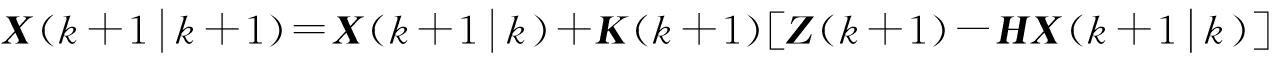 式(8)和式(9)属于时间更新方程,两式是对系统的预测,结合过程噪声协方差,为下一时刻状态值提供先验估计,同时为观测更新方程及时推送当前状态值和协方差值。结合k+1时刻通过倾角传感器测得的俯仰角值和时间更新系统及时推送的预测值,可以算出最优俯仰角度估计,即X(k+1|k+1)。