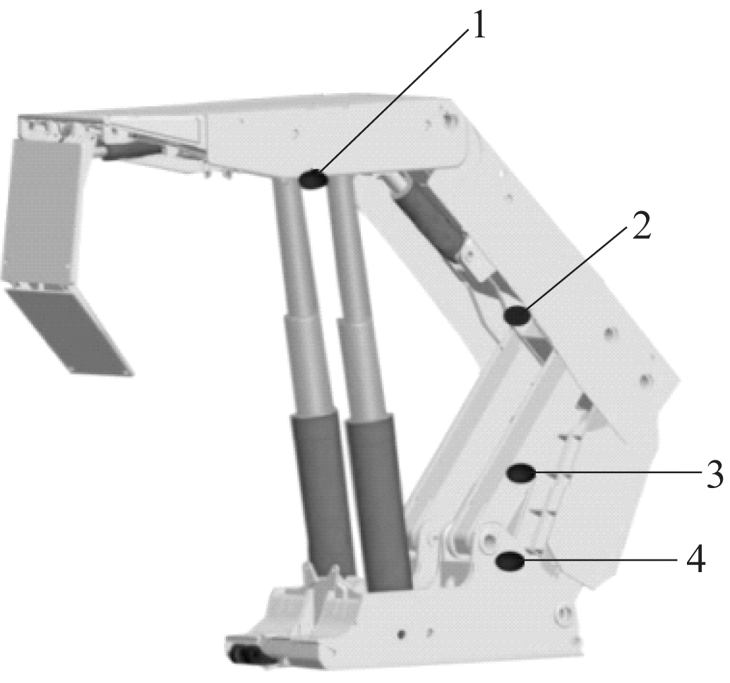 1-支架顶梁; 2-掩护梁; 3-后连杆; 4-底座